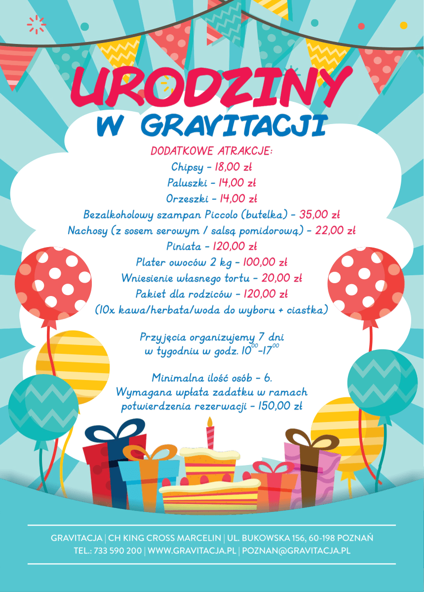 * Gravitacja zastrzega sobie prawo do wcześniejszego zamknięcia lokalu.